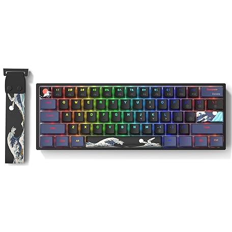 • COSTOM WK61 PRO 60% キーボード QMK搭載 ブラック 神奈川有線メカニカルゲーミングキーボード ストラップ付き RGBバックライト アニメ プリン PBT キーキャップ ホットスワップ可能 POM リニアレッドスイッチ
