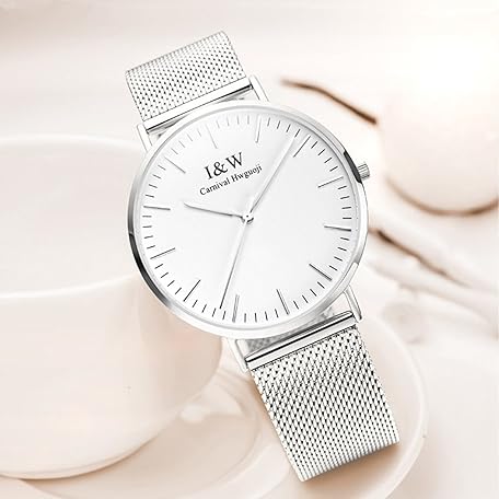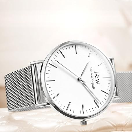 Thông tin sản phẩm Couple Watches Dial Quartz Simple Mesh Stailess Steel Strap for Her or His Set 2 40mm Silver & White Couple, Silver & White Couple, 40 mm, Fashion