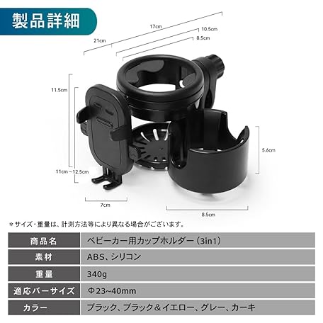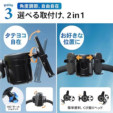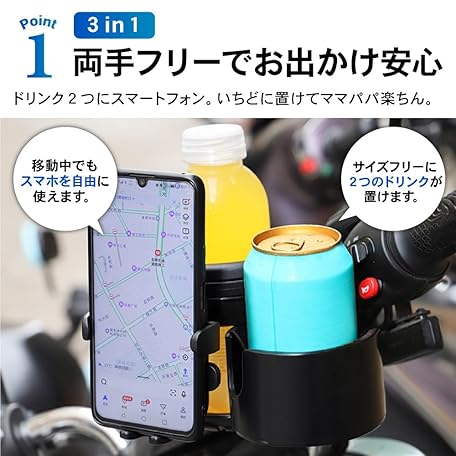 CRAFT WORKS Baby Stroller Drink Holder, 3-in-1 Cup Holder, Baby Bottle, 2 Drinks, 2 Bottles, Bottle Holder, Rotation, Storage, Baby Babies, Children, Plastic Bottle, Smartphone Stand, No Tools
