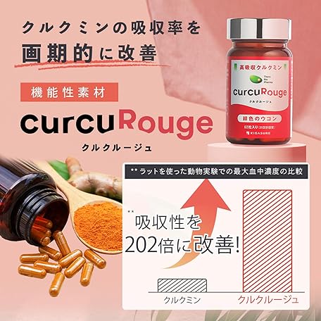 Thông tin sản phẩm Curcumin Highly Absorbent, 202x Supplement, 62 Tablets, 1 Month Worth, Turmeric, Kyoto University, Development, International Patent Application, Scarlet