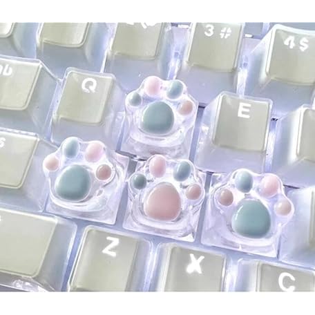 Cute Key Caps Clear Cat Paw Key Caps 4pcs Custom Key Caps 3D Transparent Replacement WASD Key Caps Resin Paw Key Caps Key Caps for Mechanical Keyboard MX Switch Cat Lover Gift Cat Paw Shape Mechanical