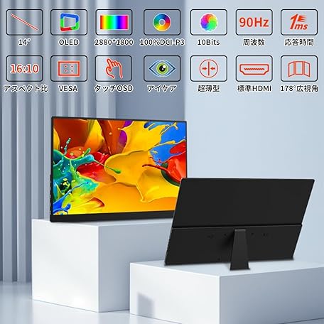 Sản phẩm Cuview モバイルモニター 有機el 90hz 2.8K 14インチ 黄金比16:10、2880x1800で 色深度10bit 色空間 DCI-P3 100% 応答速度1ms 光沢 超軽量 自立型 ミニPC・ノートPC用モバイルディスプレ đang được bán với giá ưu đãi là $405.6762 tại nước Nhật.