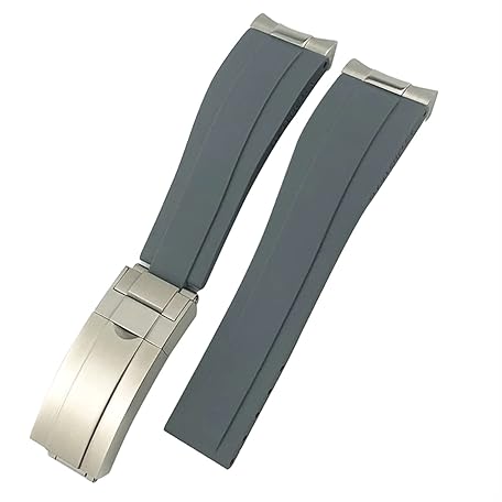 [CZKE] Rubber Watch Band 20mm Silicone Strap Fit for Rolex Daytona Submariner GMT Yacht Master Silver Curved Metal Link Watch Bracelet