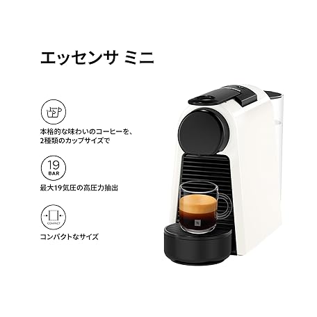 Thương hiệu Nespresso là cái tên nổi tiếng được rất nhiều khách hàng trên thế giới chọn lựa. Với kiểu dáng đẹp mắt, sang trọng, sản phẩm ネスプレッソ カプセル式コーヒーメーカー エッセンサ ミニ ピュアホワイト D 水タンク容量0.6L コンパクト 軽量 D30-WH-W là sự lựa chọn hoàn hảo nếu bạn đang tìm mua một món cho riêng mình.