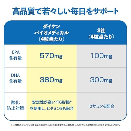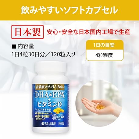 Sản phẩm DAIKEN EPA, DHA & Vitamin D, 120 Capsules (30 Days) High Concentration Omega 3 Blue Fish Oil Supplement Nutritional Food đang được bán với giá ưu đãi là $42.2484 tại nước Nhật.