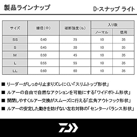Sản phẩm DAIWA D Snap Light SS/S/M/L/LL đang được bán với giá ưu đãi là $5.9623 tại nước Nhật.