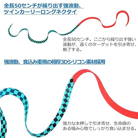 DAIWA Tieraba Necktie, Red Fang Silicone Necktie, 3D Overkill Twin Curly, Various