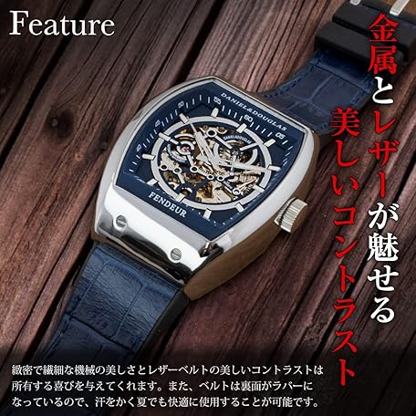 Thông tin sản phẩm Daniel & Douglas DD8810 Automatic Hand-wind Skeleton Men's Watch (Silver x Navy), silver/navy, Modern
