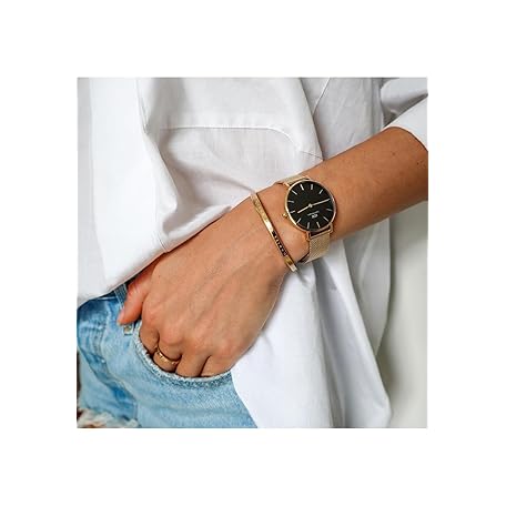 Daniel Wellington Petite Evergold Watch, Black, Bracelet Type
