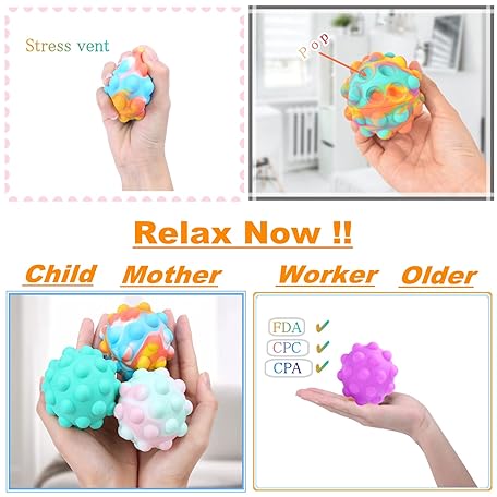 Thông tin sản phẩm Dcpetree ポップストレスボール フィジェットおもちゃ ポップボール 3Dフィジェットボール プッシュバブル 安全テスト済シリコン 簡単減圧ボール 子供に適しています (4)