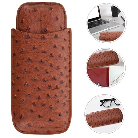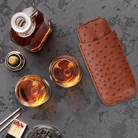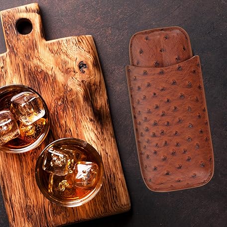 • DECORNIJIA 棕色オーストリッチ柄レザー葉巻ケース 用ポータブルシガーホルダー スリッシュ収納ポーチ 旅行用耐久性ヒュミドール適合