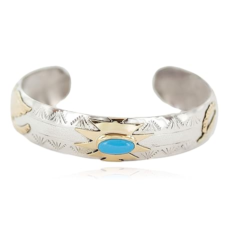 delicate $ 510小売タグ12カラットゴールドFilledとシルバーAuthenticイーグルハンドメイドMade by GenevieveジョーンズNavajo天然ターコイズネイティブアメリカンブレスレット