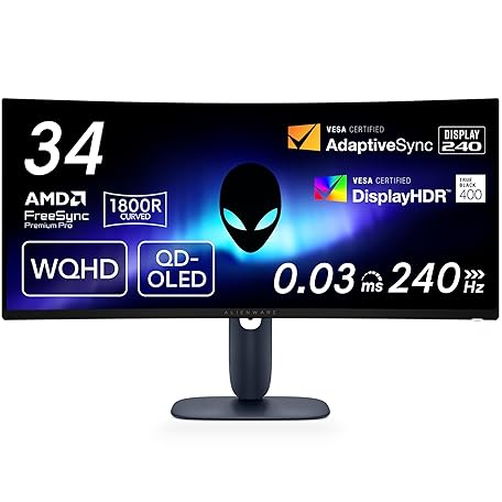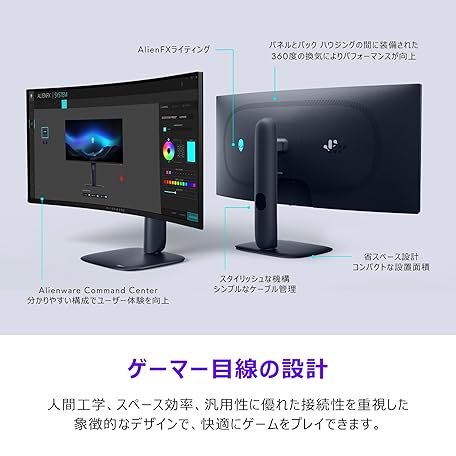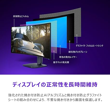 Dell AW3425DW 34インチ曲面 有機EL Alienware ゲーミングモニター(無輝点3年保証/WQHD/QD-OLED抗反射,1800R曲面/DP1.4x1,HDMI2.1x2/DCI-P3 99.3%/高さ調整,傾き/0.03ms,240Hz/G-SYNC,FreeSync Premium Pro,DisplayHDR True Black 400)