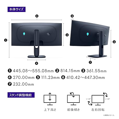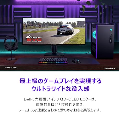 • Dell AW3425DW 34インチ曲面 有機EL Alienware ゲーミングモニター(無輝点3年保証/WQHD/QD-OLED抗反射,1800R曲面/DP1.4x1,HDMI2.1x2/DCI-P3 99.3%/高さ調整,傾き/0.03ms,240Hz/G-SYNC,FreeSync Premium Pro,DisplayHDR True Black 400)
