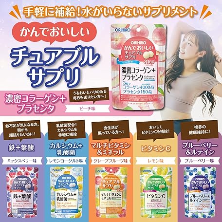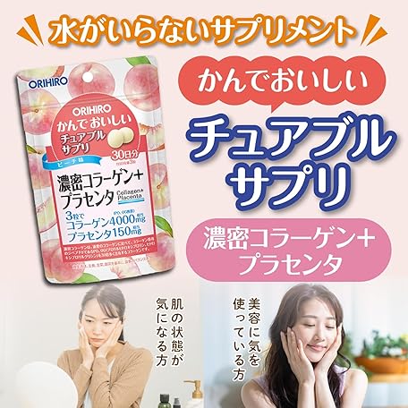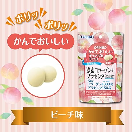 Thông tin sản phẩm Dense Collagen Placenta Chewable Supplement (Bulk Purchase) Tablets, Orihiro Peach Flavor, Daily Beauty and Health Maintenance, 90 Tablets x 3 Pieces