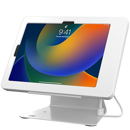 Desktop Anti-Theft Stand - CTA Kiosk Stand with Stylus, Tether and Aluminum Enclosure for iPad 11th Gen A16 11" - 10th Generation 10.9" - Air 4th & 5th Generation - 11" Pro and More - White