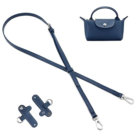 • DEVPSISR Leather Strap Suitable for Longchamp Handbag, Cross Body Adjustable Shoulder Strap Conversion Kit, Blue Silver