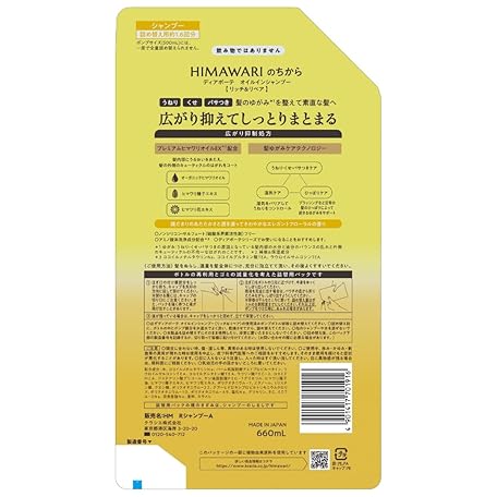 • Diabote [Rich & Repair] Oil-In Shampoo, Refill, Large Capacity, 23.0 fl oz (660 ml), Sunflower, Non-Silicone, Amino Acids, Hair Care, Swelling, Curly Hair, With Pasa, Moisture