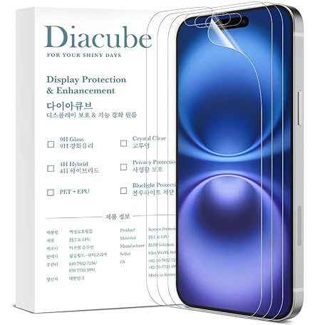 Sản phẩm DIACUBE iPhone 16 Pro TPU-EPU Material, Automatic Healing Antibacterial Film, Set of 3, Soft TPU-EPU Material, Dust Zero Easy Installation, Alignment Jig Included, No Breaking, Over 95% Transmittance, đang được bán với giá ưu đãi là $10.3986 tại nước Nhật.