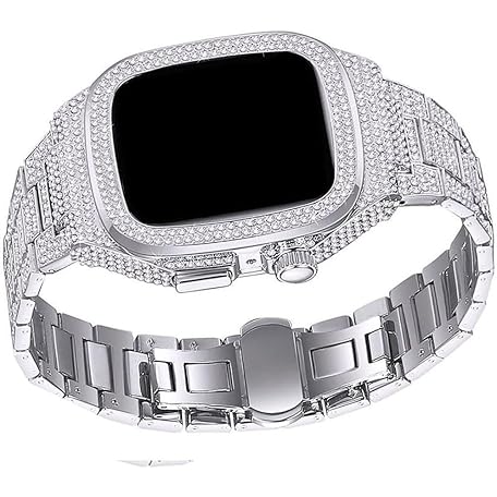 Diamond Watch Case + Metal Watch Strap Repair Kit, Apple Watch 8 7 6 5 4 SE Fashion Business Band Women Women Girls 44mm 45mm Watch Series