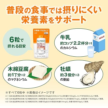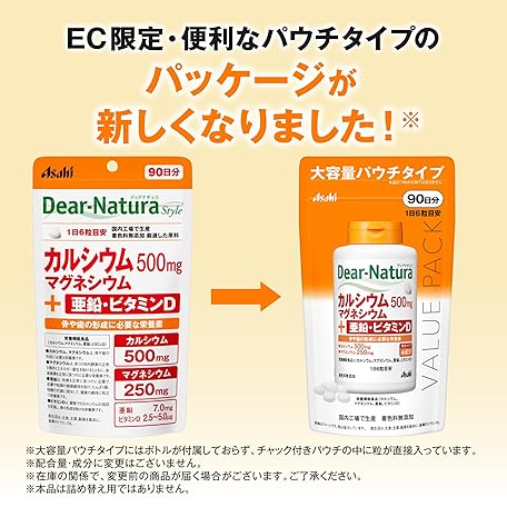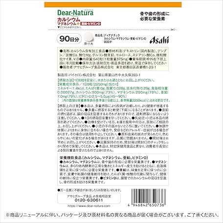Thông tin sản phẩm Dianatura Style Calcium, Magnesium, Zinc, Vitamin D, 540 Capsules (90 Day Supply), Asahi Supplement, Domestic Factory Pouch