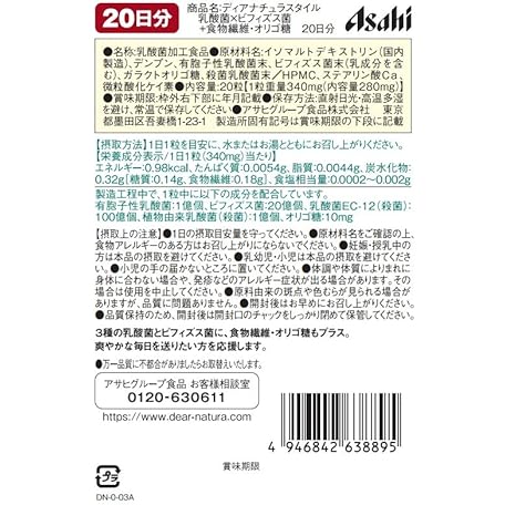 Thông tin sản phẩm Dianatura Style Lactobacillus x Bifidobacteria + Dietary Fiber, Oligosaccharide, 20 Capsules (20 Day Supply)