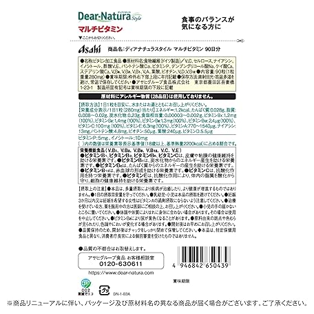 Thông tin sản phẩm Dianatura Style Multivitamins, 90 Tablets (90 Days), Asahi Supplement, 1 Capsule Per Day, Domestic Plant, Pouch