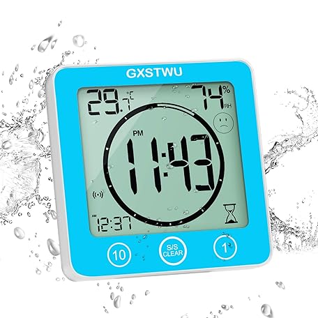 Digital Watch, Waterproof, Timer, Thermometer, Hygrometer, Half Body Bath Clock, Bath Clock, Thermometer, Hygrometer, Heatstroke, Wall Hanging, Desktop Stand, Magnet, Suction Cup, for Bathroom, Bathroom, Bathroom, Kitchen, Courtyard, Room, Shower (Blue)