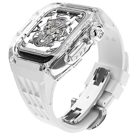 diosbras Apple Watch Case for Apple Watch Band Cover Transparent Clear Case Stainless Steel Protective Rubber Luxury Strap 44mm/45mm/49mm Urtra Integrated Sport Model Series 9/SE/8/7/6/5/4/3/2/1