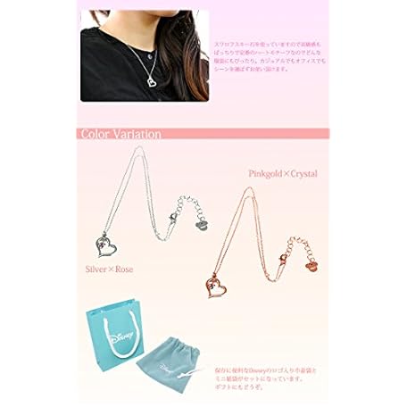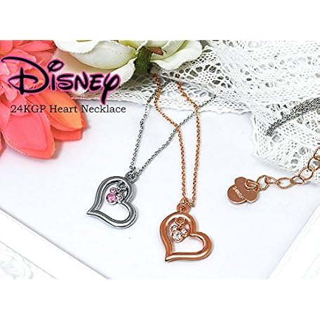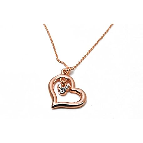 Disney 24K Gold Finish Mickey in Heart Necklace, Pink Gold Color, Swarovski Accessories, Quartz