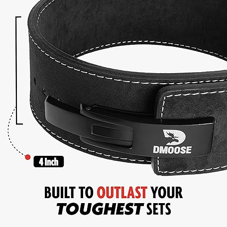DMoose Fitness ウェイトリフティングレバーベルト - 厚さ10mmのスエードレザー - ステンレススチールレバーバックルデッドリフトベルト ジムワークアウト、スクワット、デッドリフト用 - ウェイトリフティング&パワーリフティングテクニックの向上