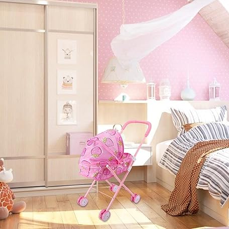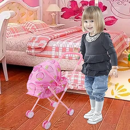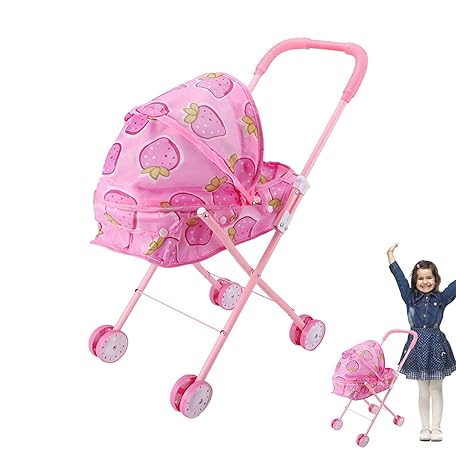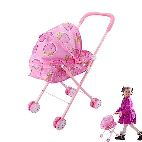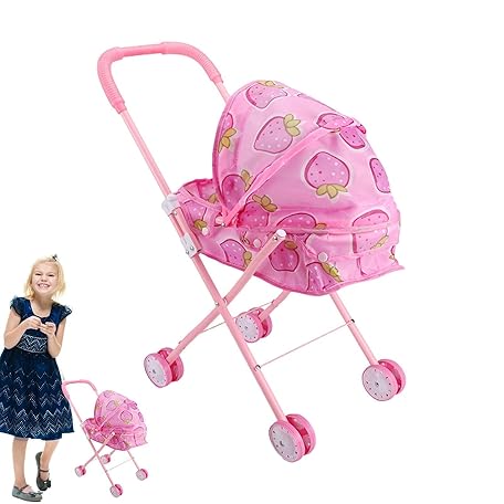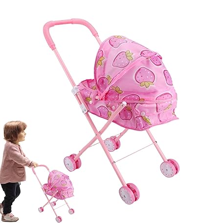 Doll Carriage - 2 in 1 Doll Stroller, Soft Grip Handle Doll Toy Stroller | Kids Playdoll Stroller with Adjustable Canopy, Foldable Simulation Playhouse Stroller, Baby Stroller for Little Girls