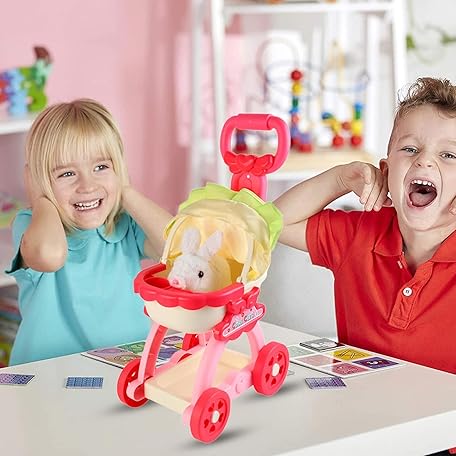 Doll Stroller, Trolley with Pet, Baby Stroller for Doll, Pretend Play Toy, Doll Stroller, Pet Play Set, Educational Toy, Nursing Practice, Pretend Play Stroller, Parent-child Play, Role Play Toy,