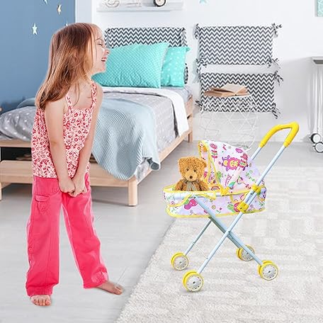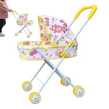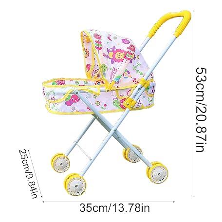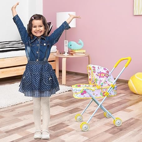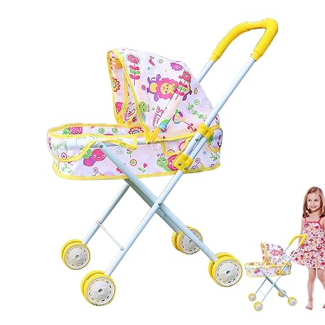 Doll Stroller,Child Friendly Retractable Canopy Doll Stroller - Foldable, Lightweight, Gift Toy for Birthdays, Christmas, Holidays for Kids 3+ Years Old Shrads