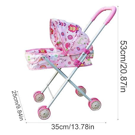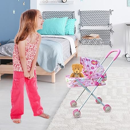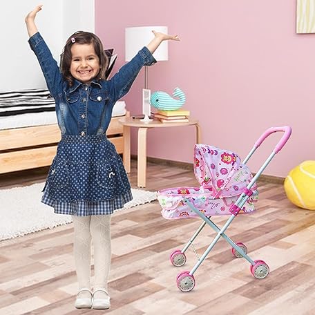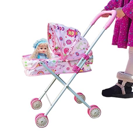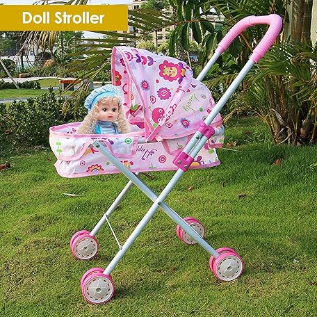 Doll Stroller,Foldable & Retractable Canopy Kid Stroller | Foldable, Lightweight, Gift Toy for Children 3+ Years Old Kids for Birthday, Christmas, Holidays Shrads