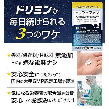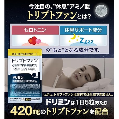Thông tin sản phẩm Dorimin Tryptophan Supplement, L-Tryptophan, 420 mg Blend, Non-Additive, Nutritional Functional Food, 30 Day Supply, 150 Tablets (Glycine GABA Theanine Free) [Supports Rest and Refreshing Mornings]