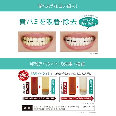 • Dr. Oral Whitening Powder, 40% Eggshell Apatite, Baking Soda, Polyphosphate, Xylitol, Citrus Flavor, 0.9 oz (25 g), Removes Plaque and Yellowing