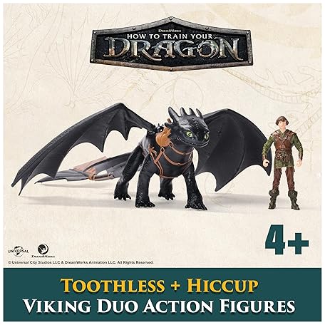 Thông tin sản phẩm DreamWorks Dragons, How to Train Dragons, Toothless & Squishy, Viking Duo Action Figure, Kids Toy for Boys Ages 4+