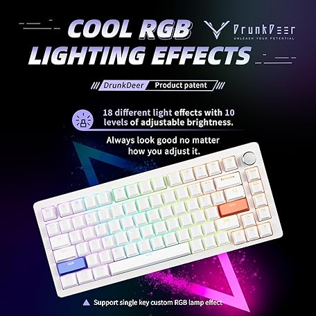 Thương hiệu DrunkDeer là cái tên nổi tiếng được rất nhiều khách hàng trên thế giới chọn lựa. Với kiểu dáng đẹp mắt, sang trọng, sản phẩm DrunkDeer A75 Rapid Trigger Keyboard Mechanical TKL Gaming Magnetic Switch RGB Wired USB Compact 82 Keys with Knobs Ghost Proof Spill Proof White là sự lựa chọn hoàn hảo nếu bạn đang tìm mua một món cho riêng mình.