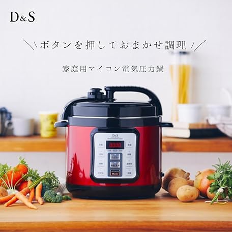 • D&S STL-EC50R Electric Pressure Cooker with Food and Press Timer, 1.2 gal (4.0 L), Red Hot Electric Pressure Cooker, Easy Pressure Cooking, Timer Function, Glass Lid for Reheating