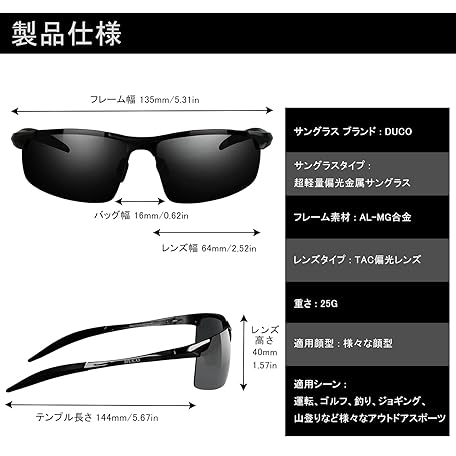 Sản phẩm DUCO 8177 Men's Sunglasses, Polarized Sports Sunglasses, UV400, Hanko, Sangurasu, AL-MG Alloy, Ultra Lightweight Sunglasses for Men, For Driving, Bicycling, Fishing, Running, Golf đang được bán với giá ưu đãi là $25.7349 tại nước Nhật.