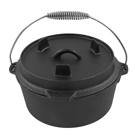 Dutch Oven Stock Pot with Camping Lid Nonstick Soup Pot Cooking Pot Clock Pot Cast Iron Cookware Cast Iron Pot Thermometer Notch for Camping Cooking (25CM)