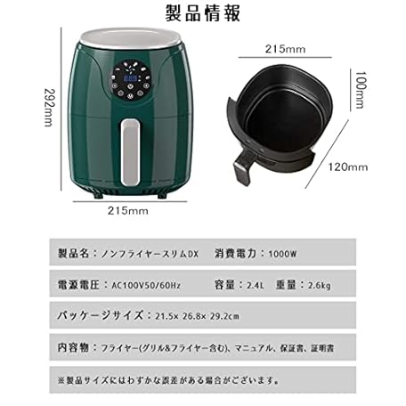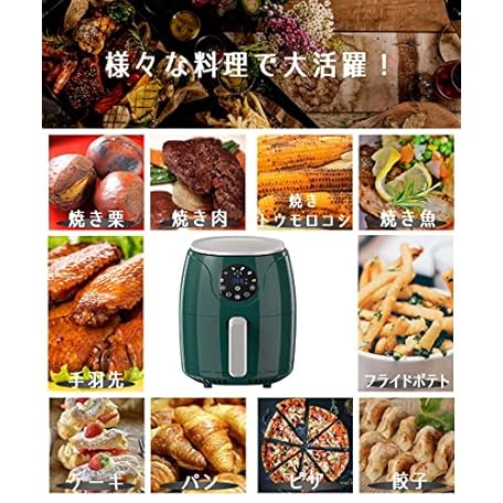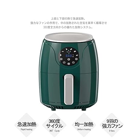 Thông tin sản phẩm ノンフライヤー スリムDXグリーン液晶LFR-806G 急速空気循環システム 電気フライヤー ノンオイル 揚げ物 惣菜 1~4人 エアーフライヤー LEDディスプレイ タッチパネル タイマー 健康フライヤー (DXグリーン)