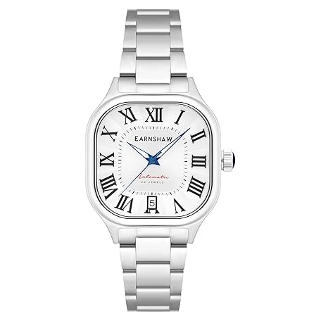 • Earnshaw Coussin 自動シルバースクエアダイヤル メンズ腕時計 - ES-8284-11, シルバー(Silver), OS, モダン