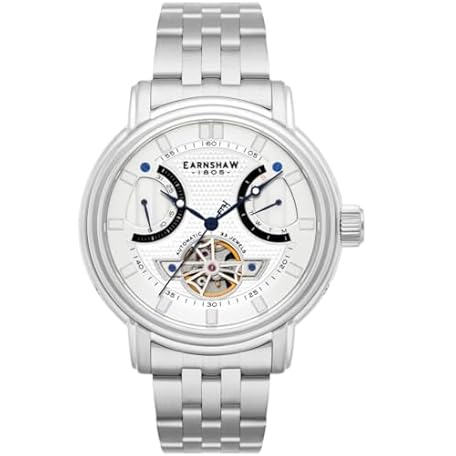 Earnshaw ES-8184-33 Retrograde Back Skeleton Mechanical Day-Date British Tradition Automatic Watch, Silver, Bracelet Type