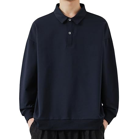 EASTEMPO Men's Polo Shirt, Long Sleeve, Autumn, Stylish, Solid, Loose, Casual, Business, Large Sizes