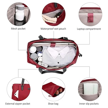Sản phẩm ECOSUSI Travel Duffel Bag for Women Weekender Bag with Shoe Bag Nylon Carry On Overnight Bag Waterproof 25L, 2-Red đang được bán với giá ưu đãi là 0 tại nước Nhật.