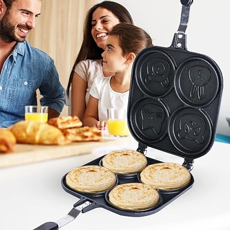 Egg Fry Pan | Kids Double Sided Pancake Animal Mold 4 Cup,Pancake Pan Nonstick Egg Pan Omelet Fry Pan Pancake Griddle Mold Skillet 4 Animal Baking