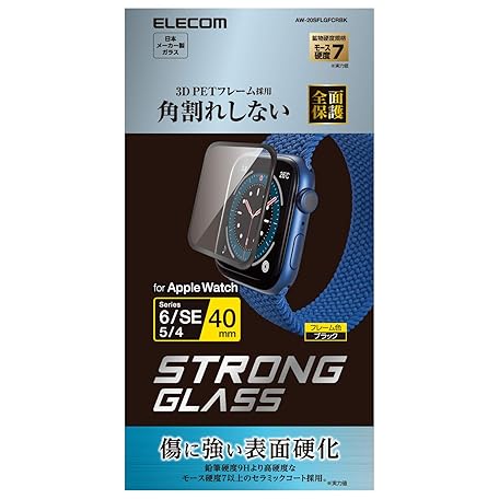 Thông tin sản phẩm Elecom AW-20SFLGFCRBK Apple Watch Glass Film, 1.6 inches (40 mm), Compatible with Apple Watch SE2 SE 6 5 4, Full Coverage, Ceramic Coat, Frame Included, Anti-Fingerprint, Black