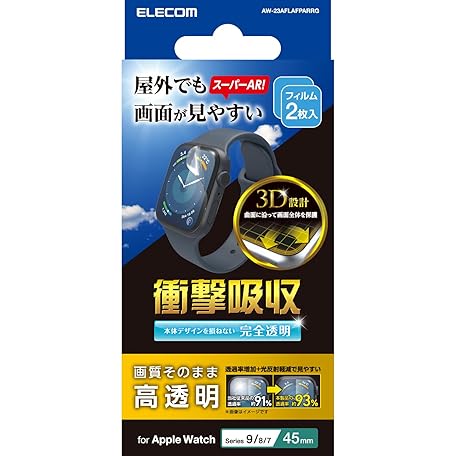 Elecom AW-23AFLAFPARRG Apple Watch 45mm Series 9 8 7 Film Full Face Shock Absorption Application Tool Anti-Reflection Gloss Anti-Fingerprint Clear